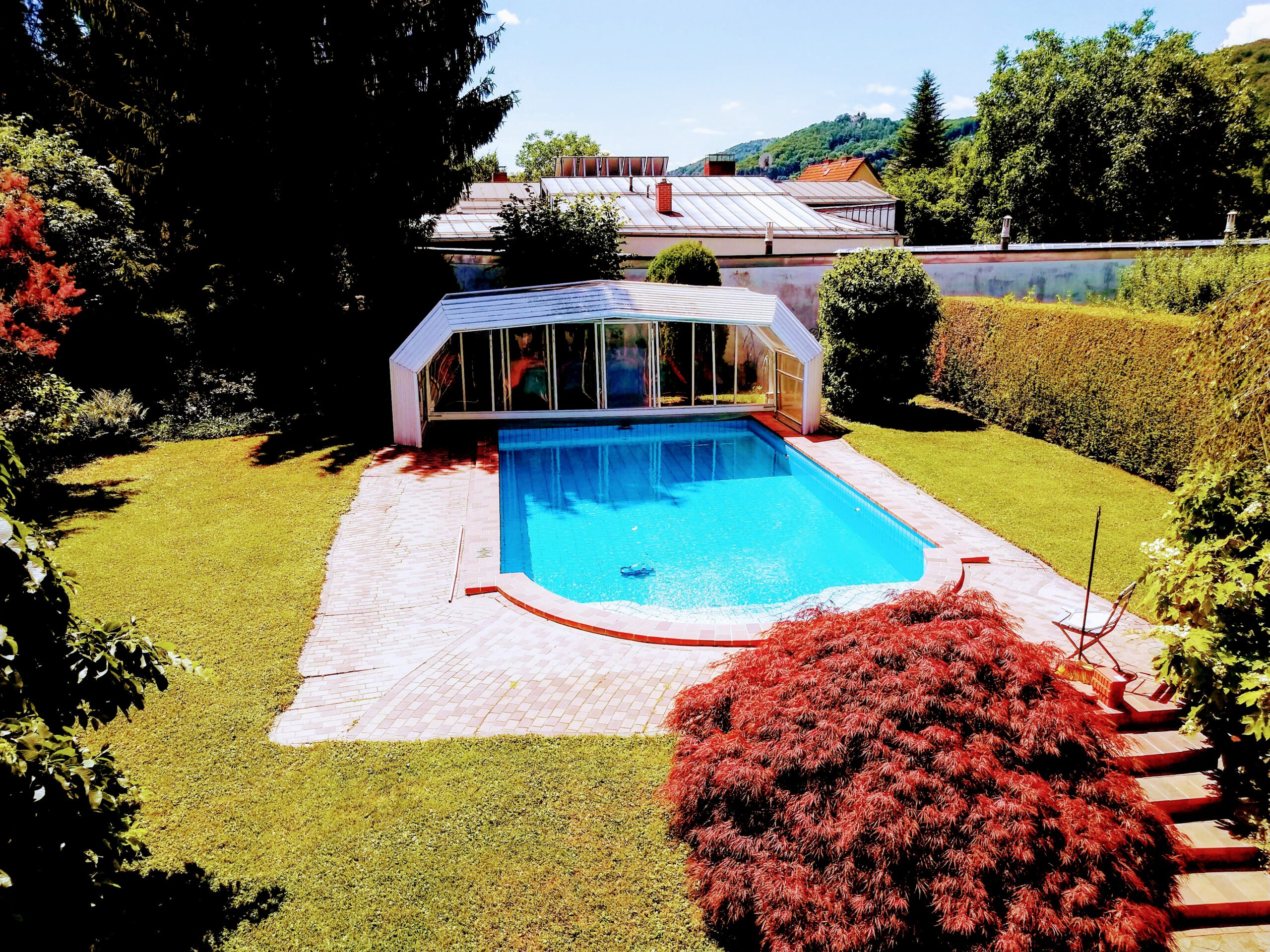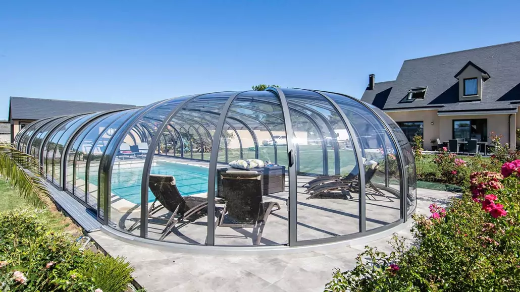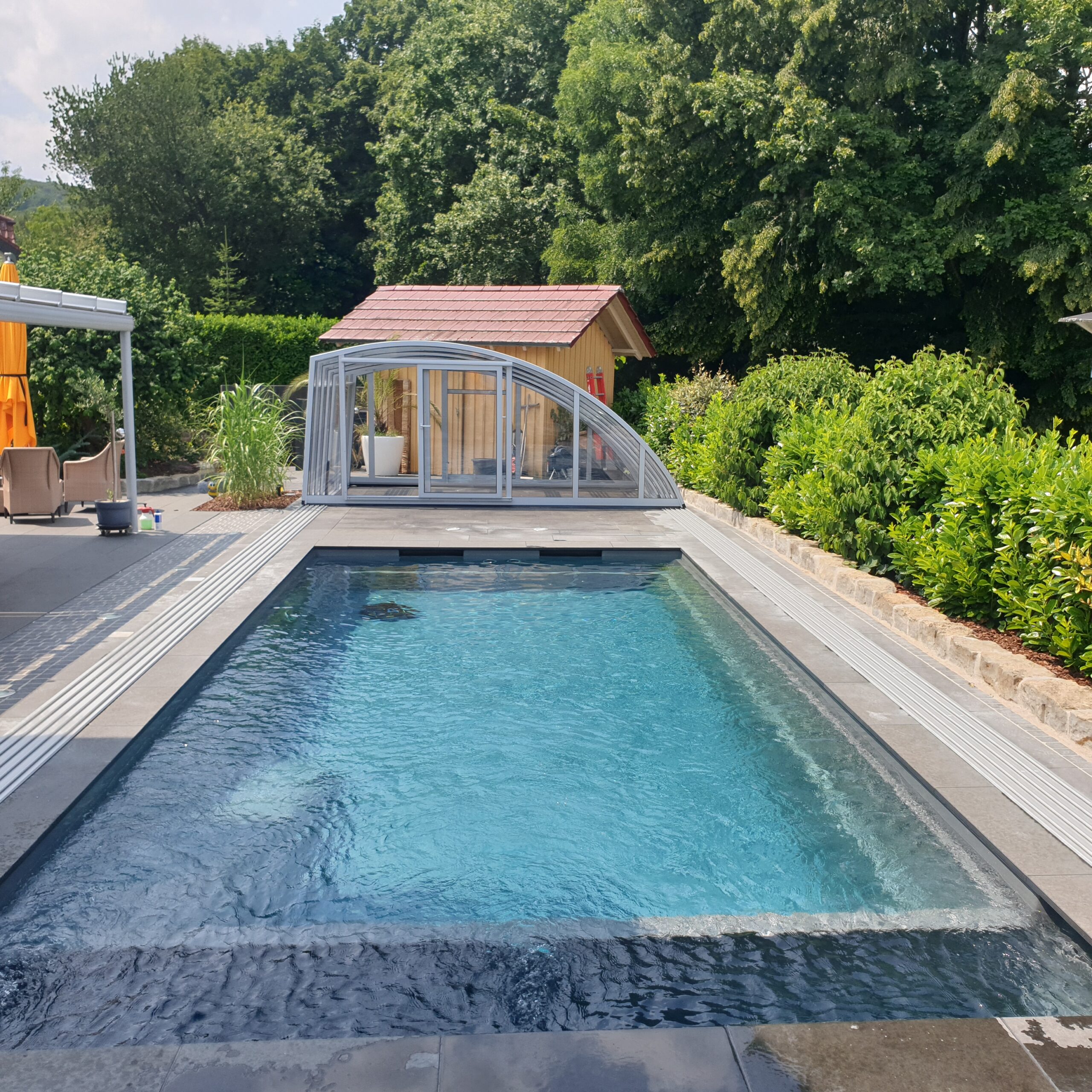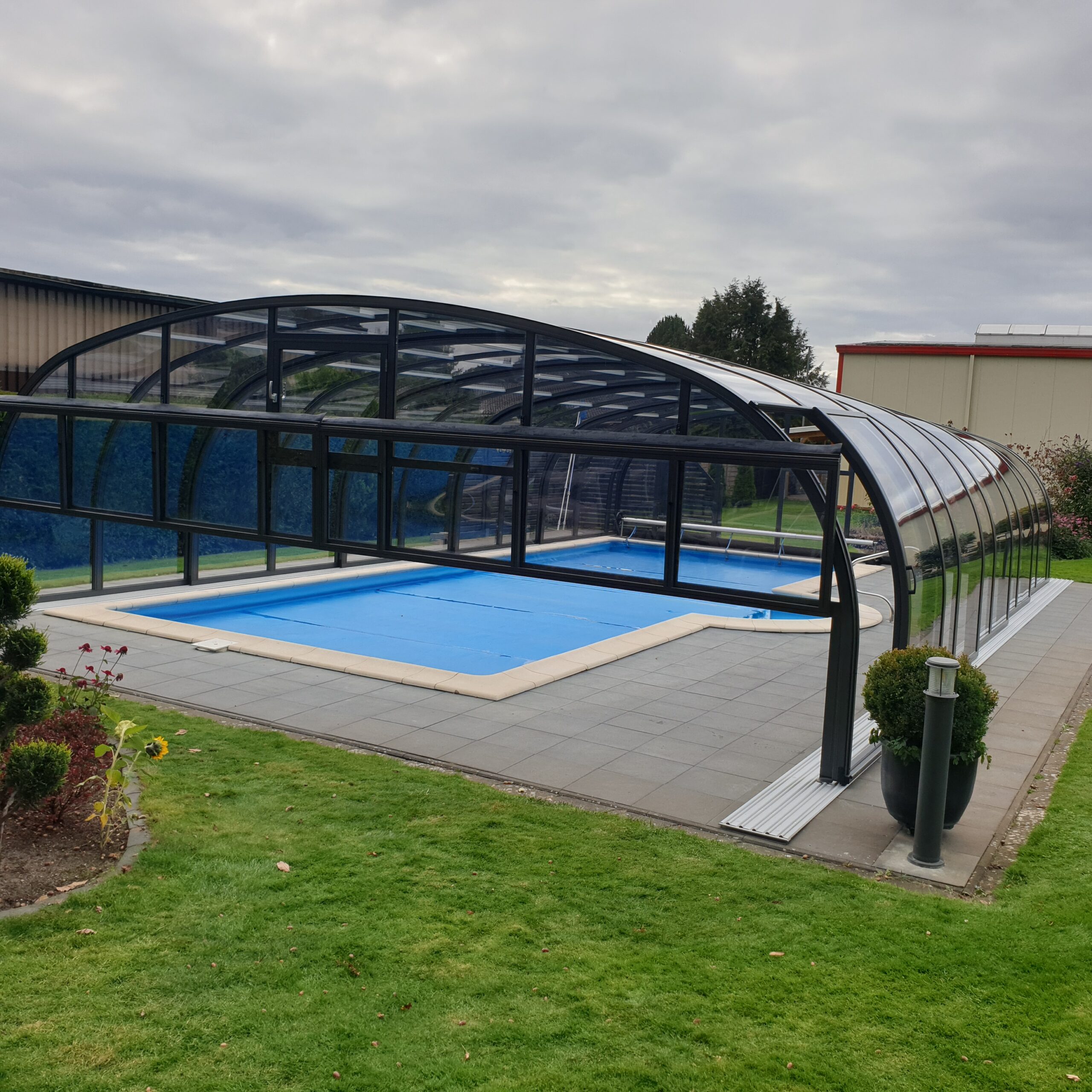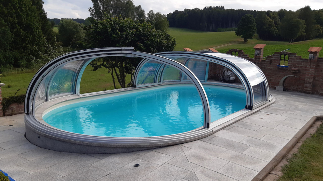 Schwimmbadüberdachung und Rollladen