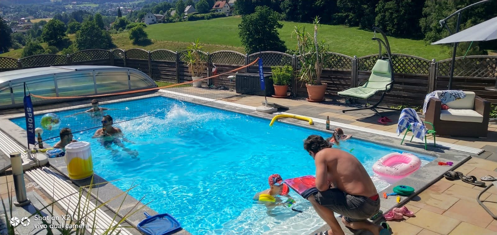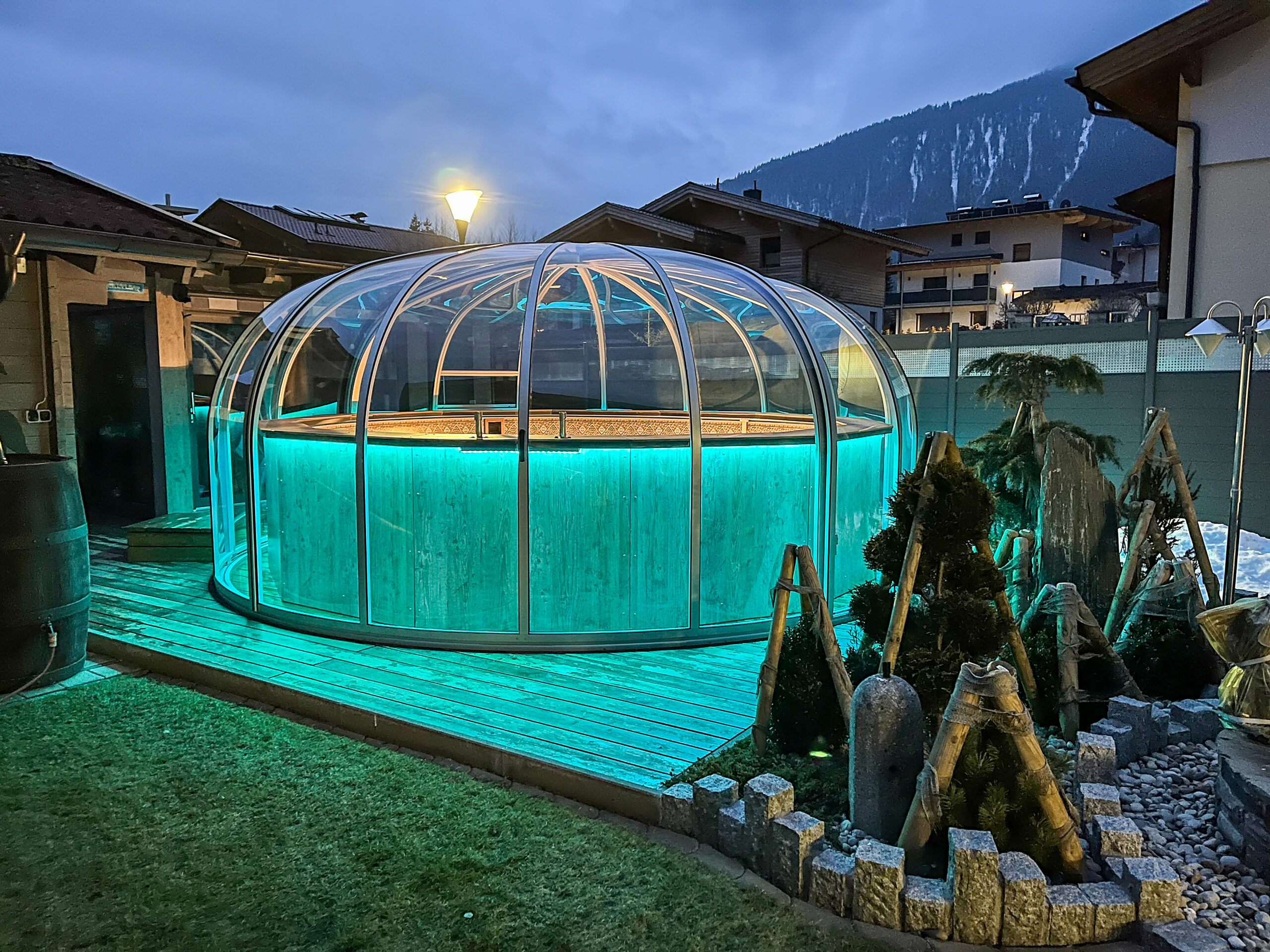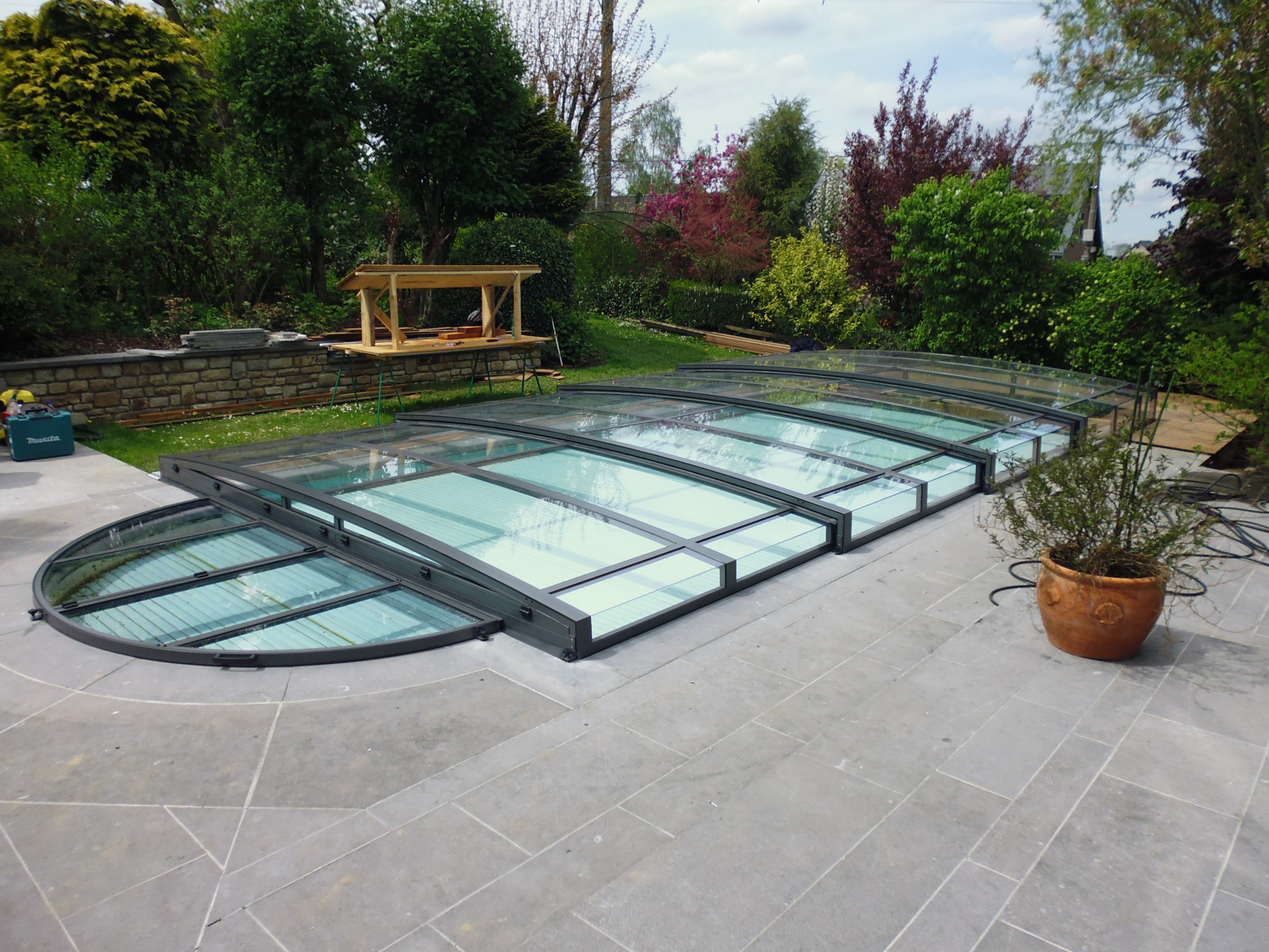 Schwimmbadüberdachung und Rollladen
